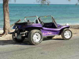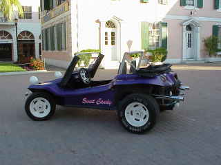 This is my bid on buggy of the month, Sweet Candy, driving in Nassau Bahamas every day, I bought the car as a wreck in Jacksonville in Florida in january 1997, got it to Nassau. All at the shipping company was laughing when they saw it (garbage they said)I took it totally apart, repaired the platform, and got it painted, I bought a engine from a 1997 bettle (mexico model) with fuel injection (took the injection out of the engine) took it apart and rebuilt it as a 2.0. No carburators were good enough, so I got 4 single carburators from the Porsche factory (I have a good freind there) and made the manifold, total power 105 HP.