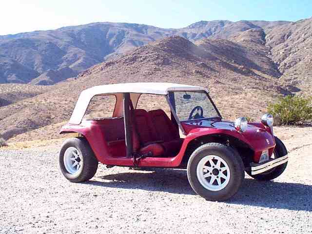 Motor is a 1641 cc dual port with a weber progressive two barrel carburator, 4 into 1 exhaust. The front seats are from a Ford Mustang. This car was just restored last March and participated in the Manx Club 1998 Borrego Desert run.