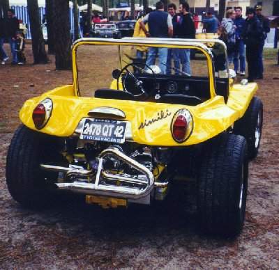 The event includes a swap meet; vendor sales of parts, accessories, clothing, and momentos; restaurants; an off-road track for buggies and quads; and live music.