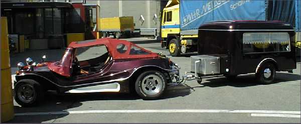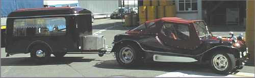 Angehängt ist mein Schlafwagen, ein ehemaliger Leichenwagen