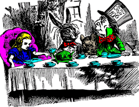 The Mad Hatter and the March Hare are discussing whether the Teapot