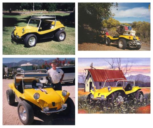 The car's name is "New Yeller" because my previous Manx type buggy which I built in 1966 was named "Old Yeller". I seem to have a pre-occupation with yellow cars as I also belong to the Y.B.D.B Club (Yellow Baja and Dune Buggies). To be a member of the Y.B.D.B. Club you must have a yellow car or be willing to paint it yellow "real soon".