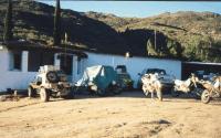 A man and a women on bikes left first (just before us). Our goal for the day was the observatory in the San Pedro Martir Mountains near the top of the Baja pennisula's tallest peak, which is 10,154 feet high. There are several ways south from Mike's. We followed the motorcycle riders out...not an easy road...not well marked either! Bruce Lightner went trail-blazing...following the fresh motorcycle tracks. A number of forks in the trail added uncertainty...plus, we knew we would be restricted in our wanderings by limited fuel onboard.