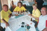 Just after noon we were at the Mexican border at Tecate. We filled up our cars and gas cans with fuel on the US side. First stop after crossing into Mexico was for lunch in town. Bruce Lightner forgot his tellow Y.B.D.B. T-shirt, so Dave loaned him a spare...we were mistaken for some kind of "gringo gang" during the trip, thanks to our matching "uniforms".
